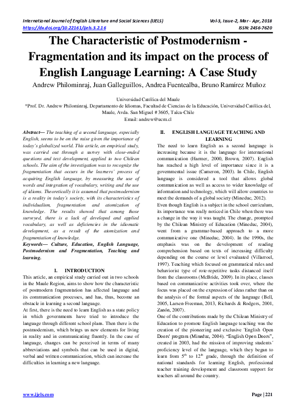 (PDF) The Characteristic of Postmodernism - Fragmentation and its ...