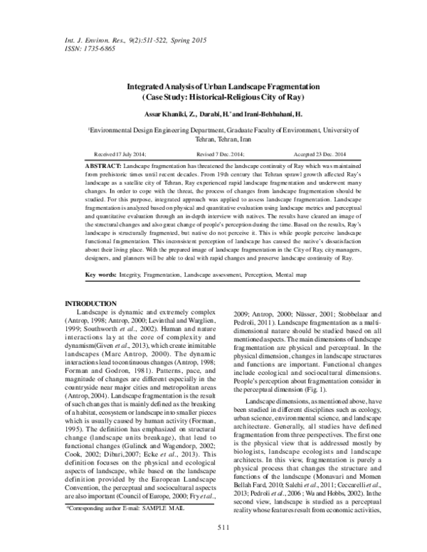 (PDF) Integrated Analysis of Urban Landscape Fragmentation (Case Study ...