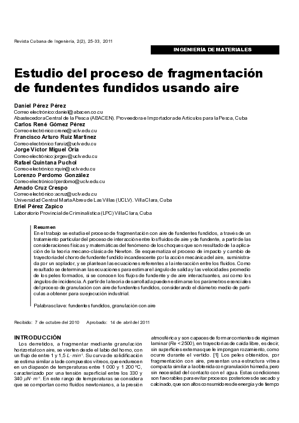 (PDF) Study of Fragmentation Process of Fused Fluxes Using Air