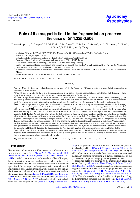(PDF) Role of the magnetic field in the fragmentation process: the case ...