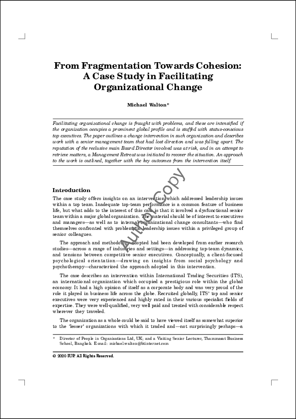 (PDF) From Fragmentation towards Cohesion: A case study in Facilitating ...