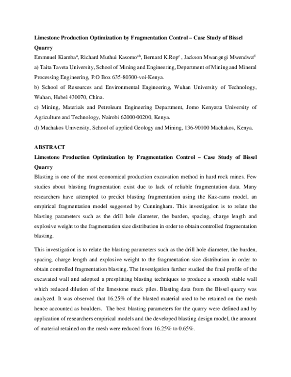 (PDF) Limestone Production Optimization by Fragmentation Control – Case ...