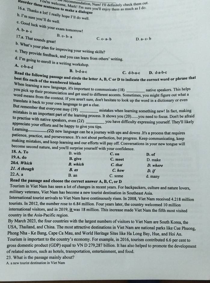 Giải quyết:Many young people think being a tour guide is a dream job ...