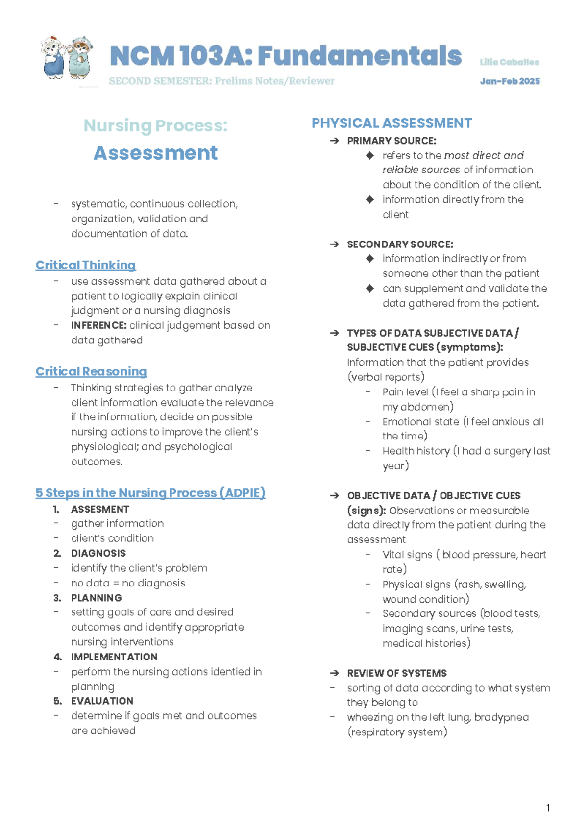 NCM 103A Nursing Process: Comprehensive Assessment and Clinical ...