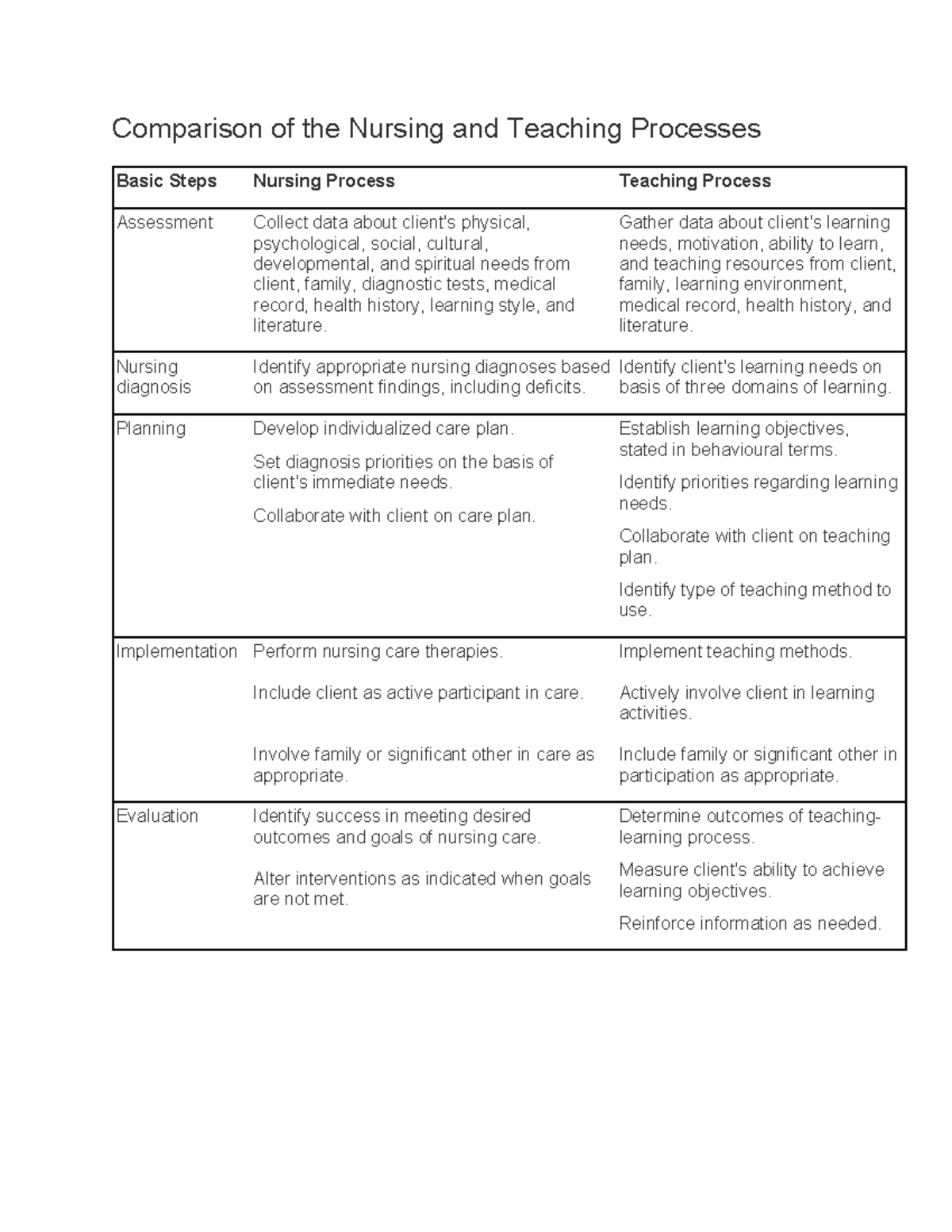 Teaching and Nursing Process Comparison: Key Steps and Strategies - Studocu