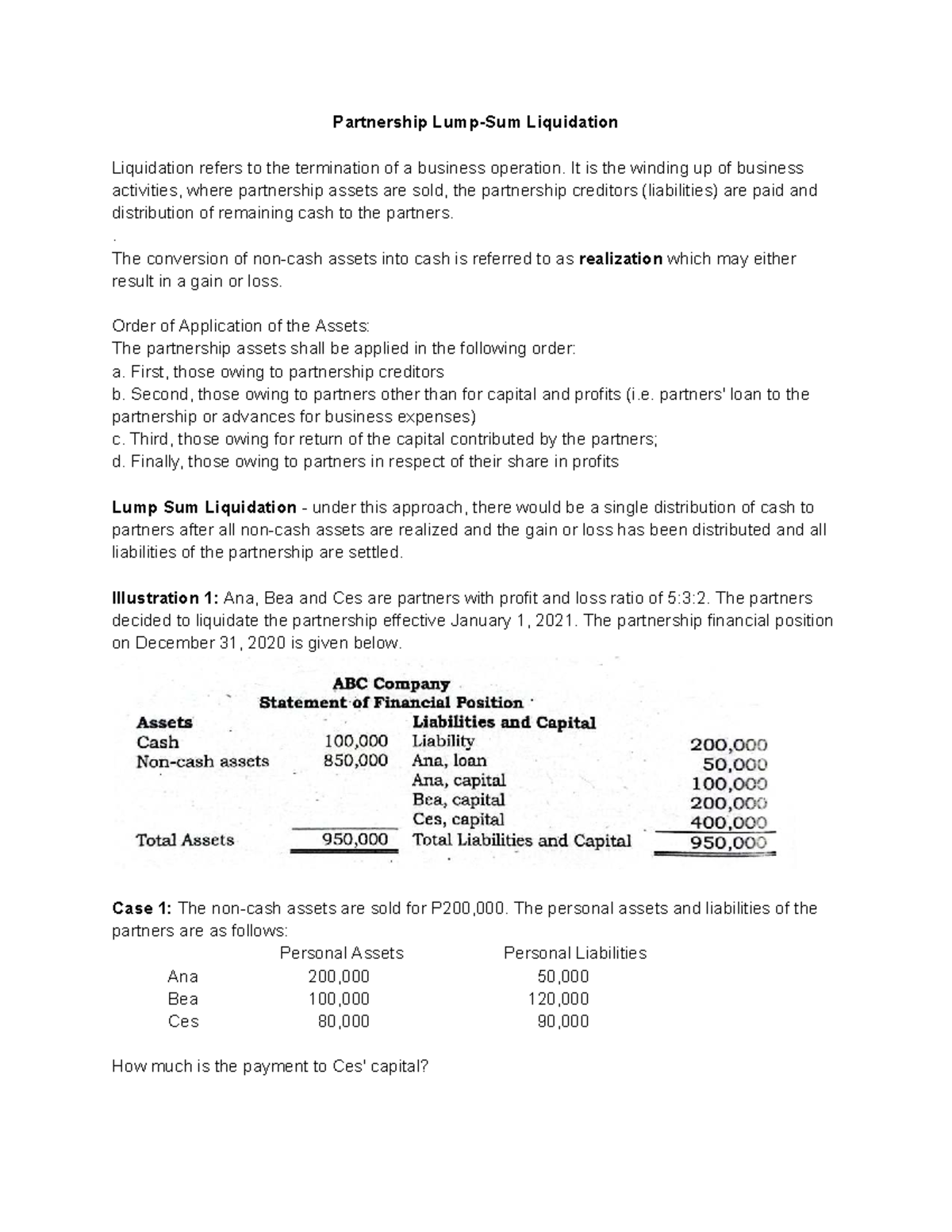 Partnership Liquidation: Lump Sum Distribution Process - Studocu