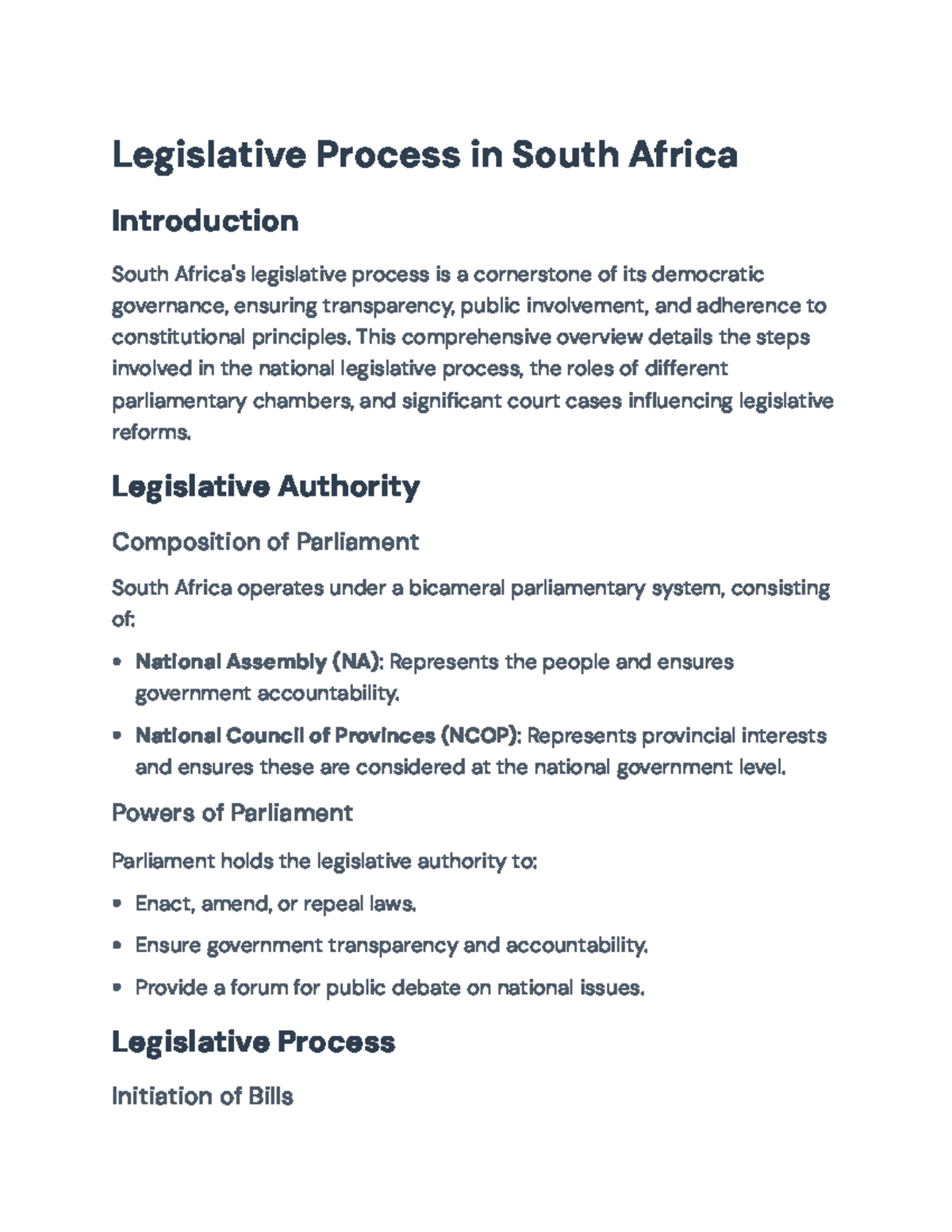 SA Legislative Process Overview: Steps, Roles, and Case Studies - Studocu