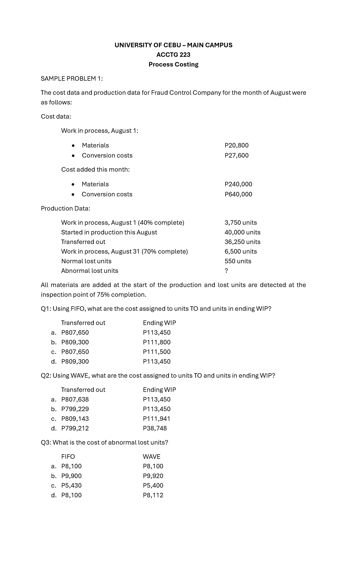 ACCTG 223 Process Costing Notes: Sample Problem Analysis - Studocu