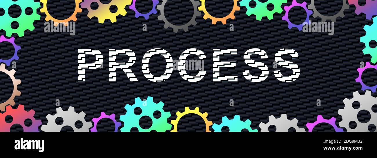 Word process surrounded with multicolored cogwheels Stock Photo - Alamy