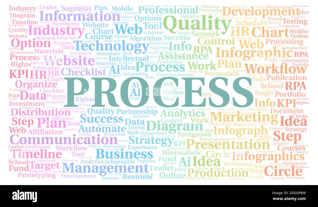 Process typography word cloud create with text only Stock Photo - Alamy