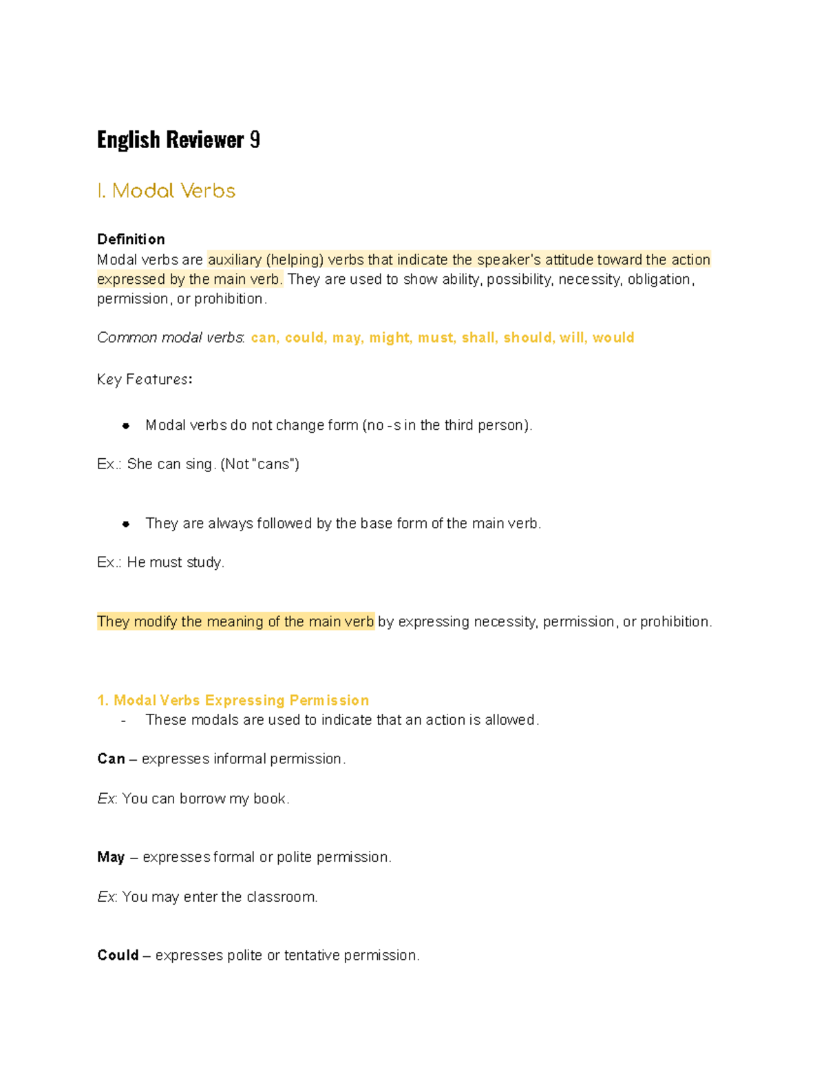 English 9 Q1 - Modal Verbs and Communication Concepts - Studocu