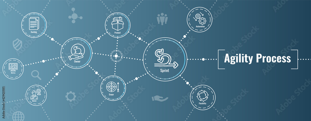 Agile Scrum Process and development icon set web header banner Stock ...