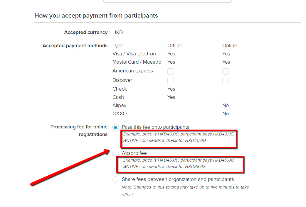 Explanation on Example Text of "Processing Fee for Online Registrations"