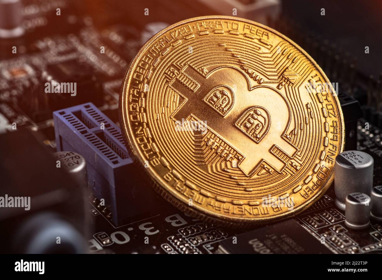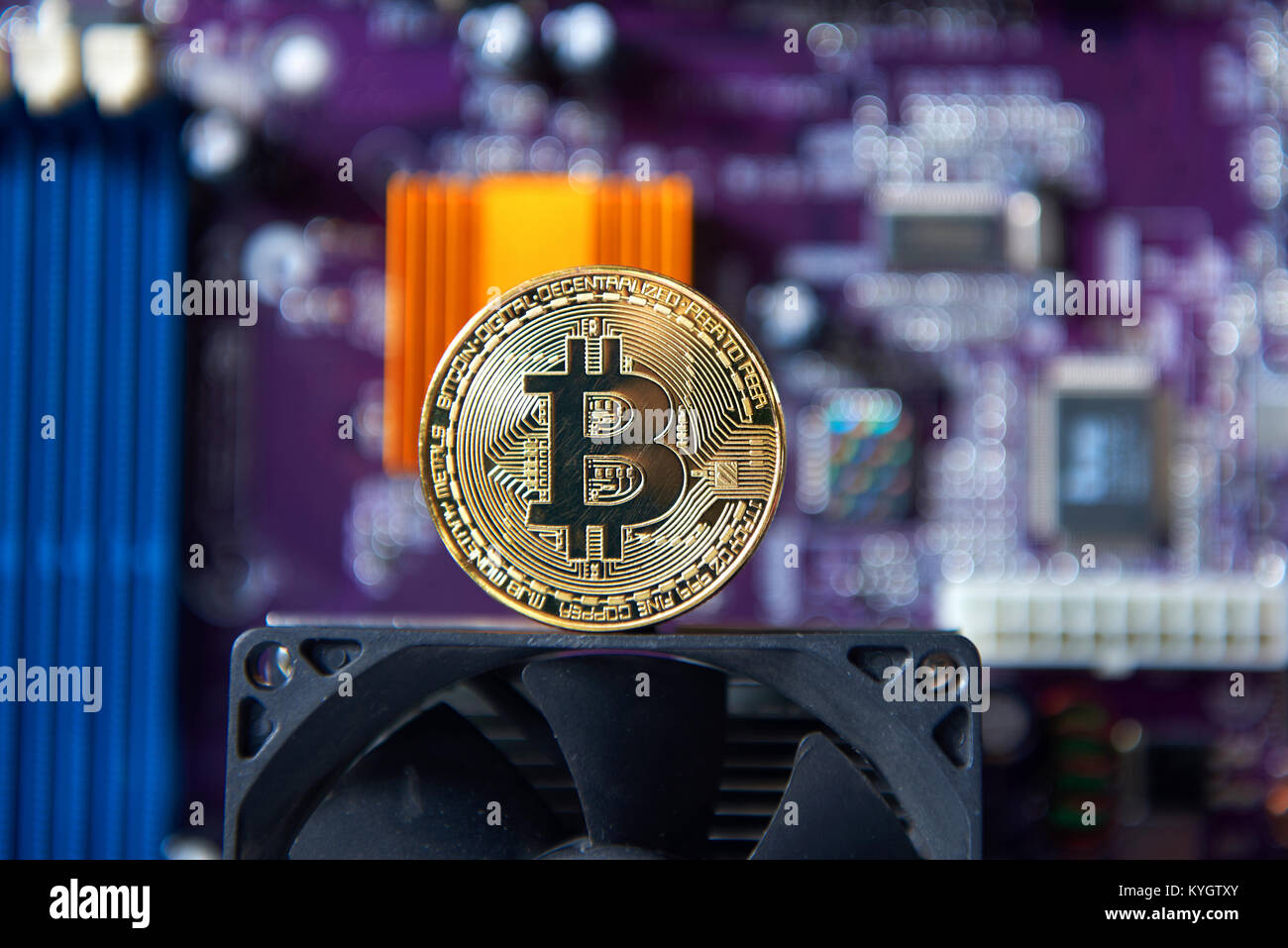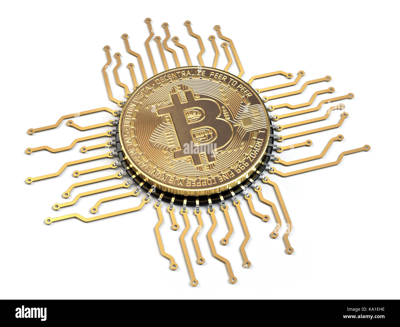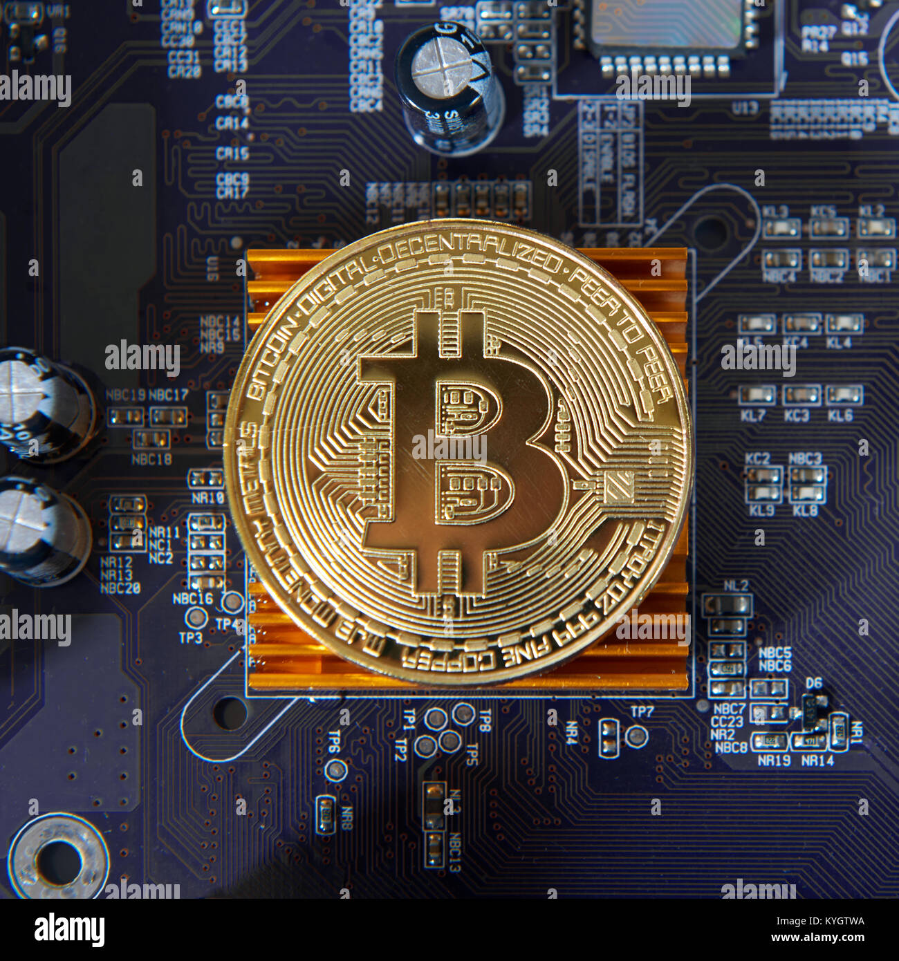 Bitcoin coins, CPU and printed circuit board PCB Stock Photo - Alamy