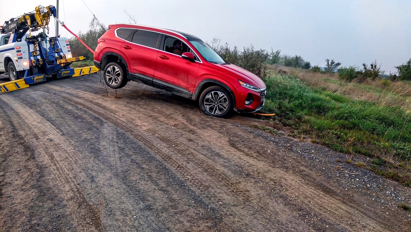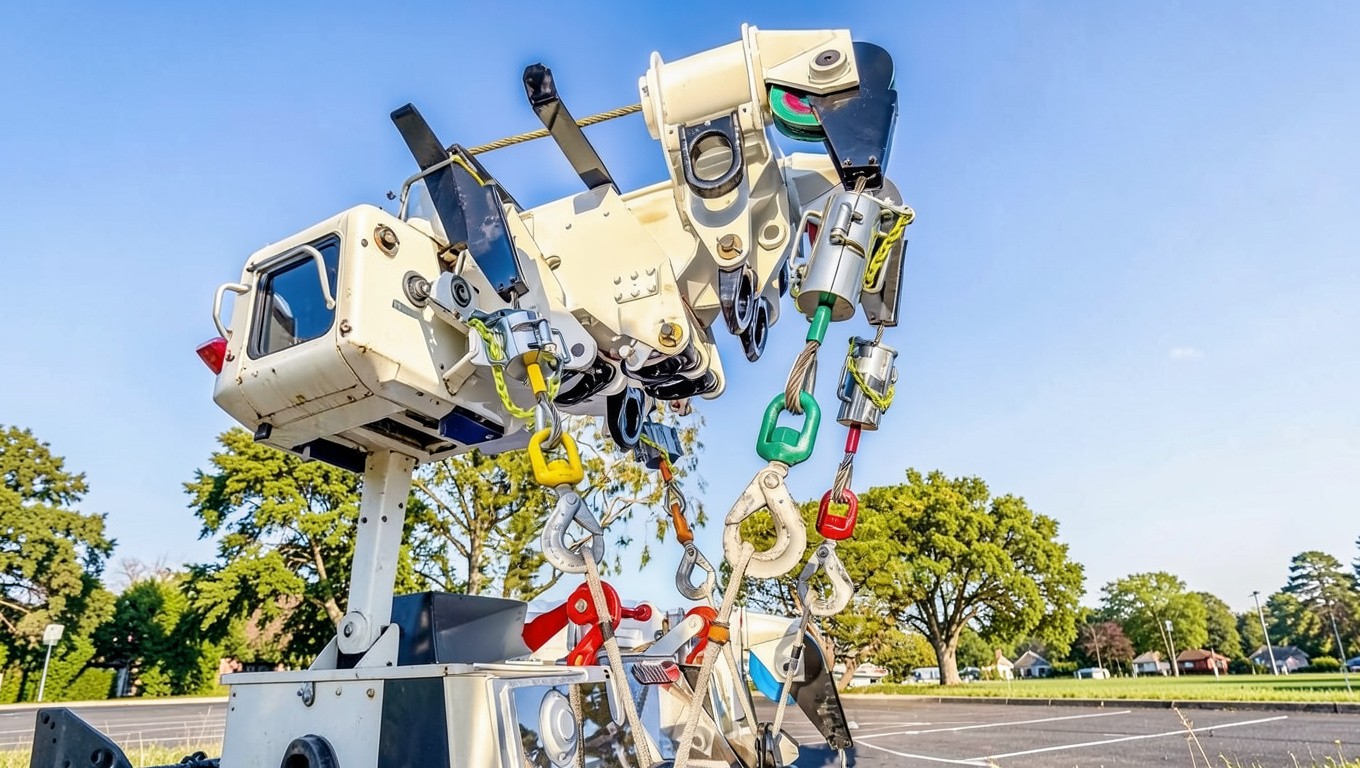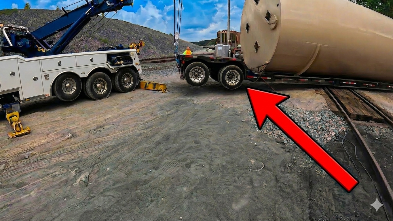 Stuck on railroad tracks — rotator vs oversized load under power lines