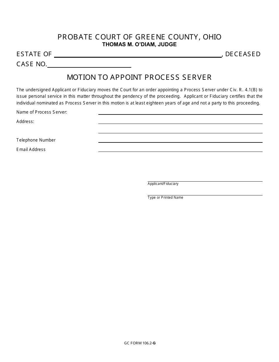 Fillable Request For Appointment Of Process Server Form printable pdf ...