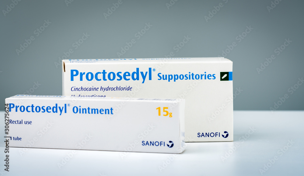 CHONBURI, THAILAND-AUGUST 3, 2018 : Proctosedyl Suppositories and ...