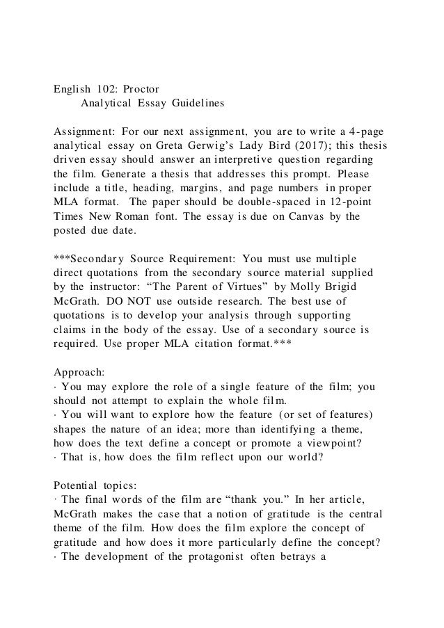 English 102 ProctorAnalytical Essay GuidelinesAssignme | PDF