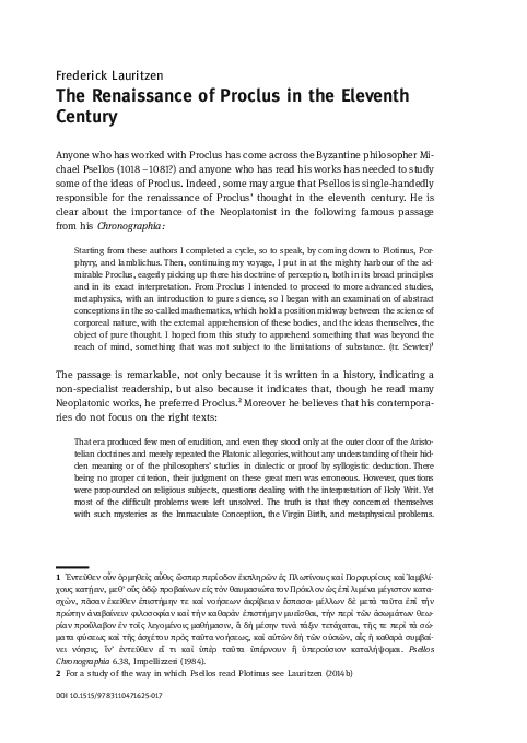 (PDF) The Renaissance of Proclus in the Eleventh Century