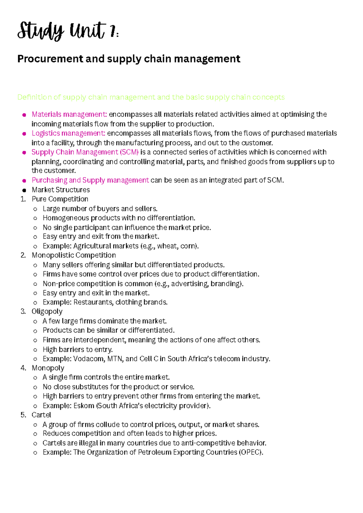 Study Unit 7😀 - notes - Study Unit 7: Procurement and supply chain ...
