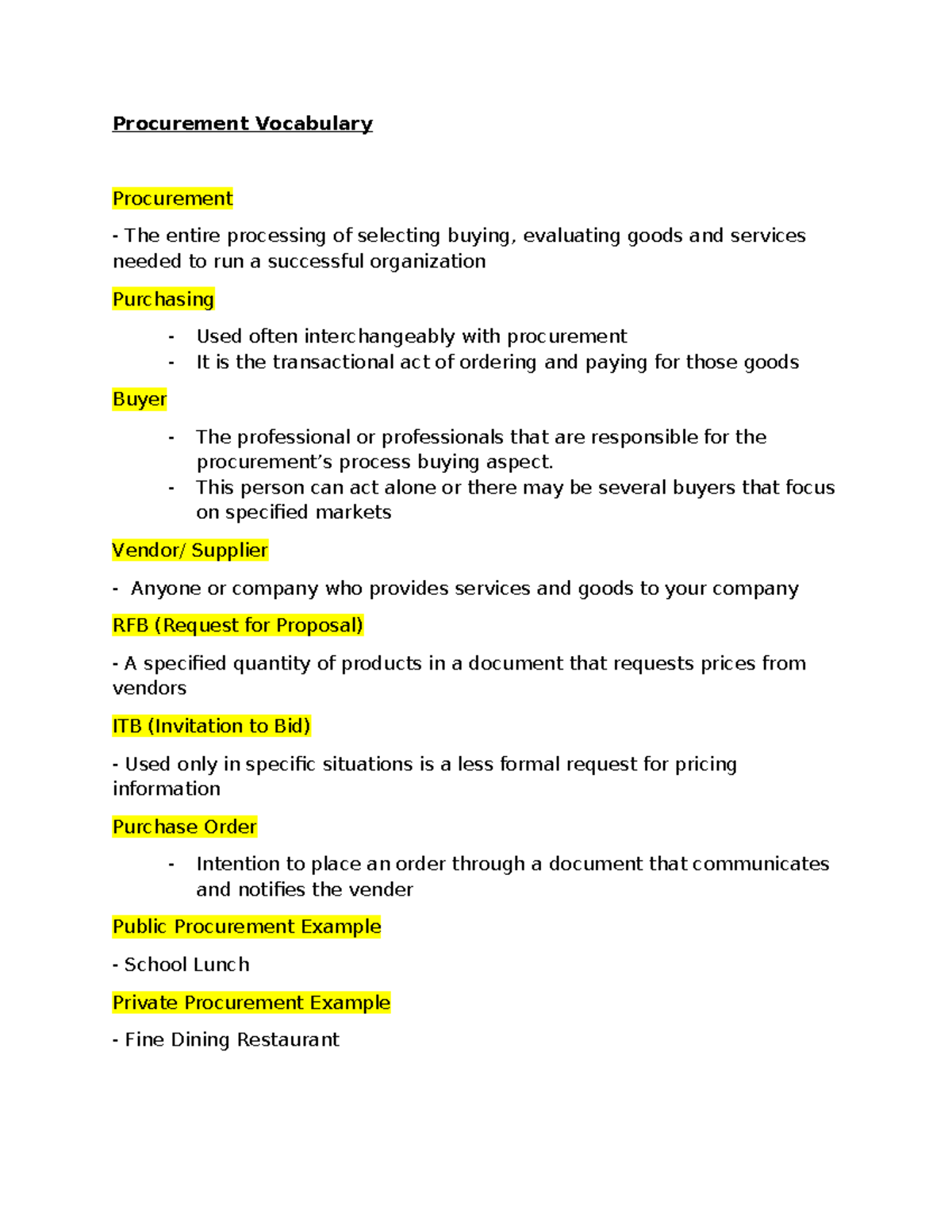 Introduction to Procurement Notes - Procurement Vocabulary Procurement ...