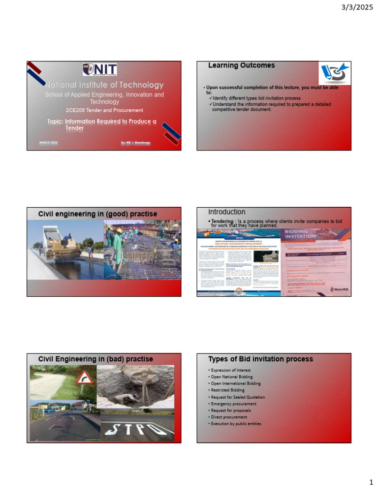 2CE205 Tender and Procurement. Class Notes | PDF | Business