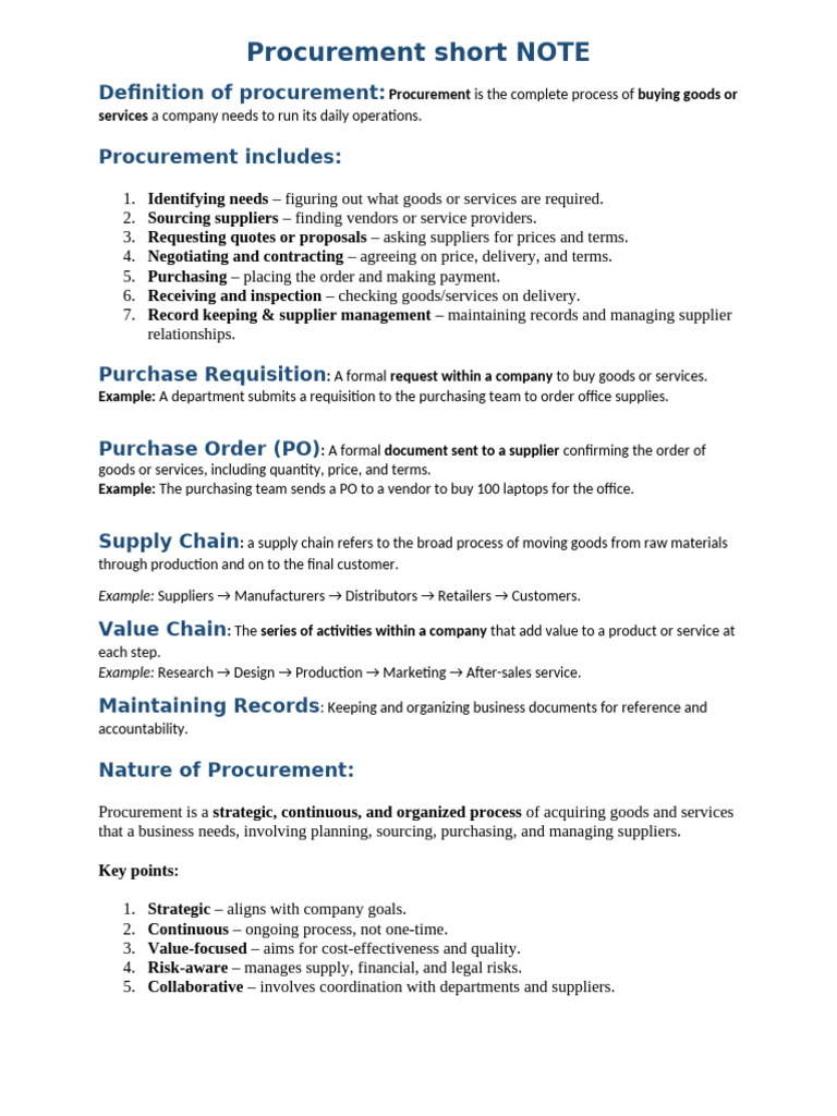 Procurement Short NOTE | PDF | Procurement | Supply Chain