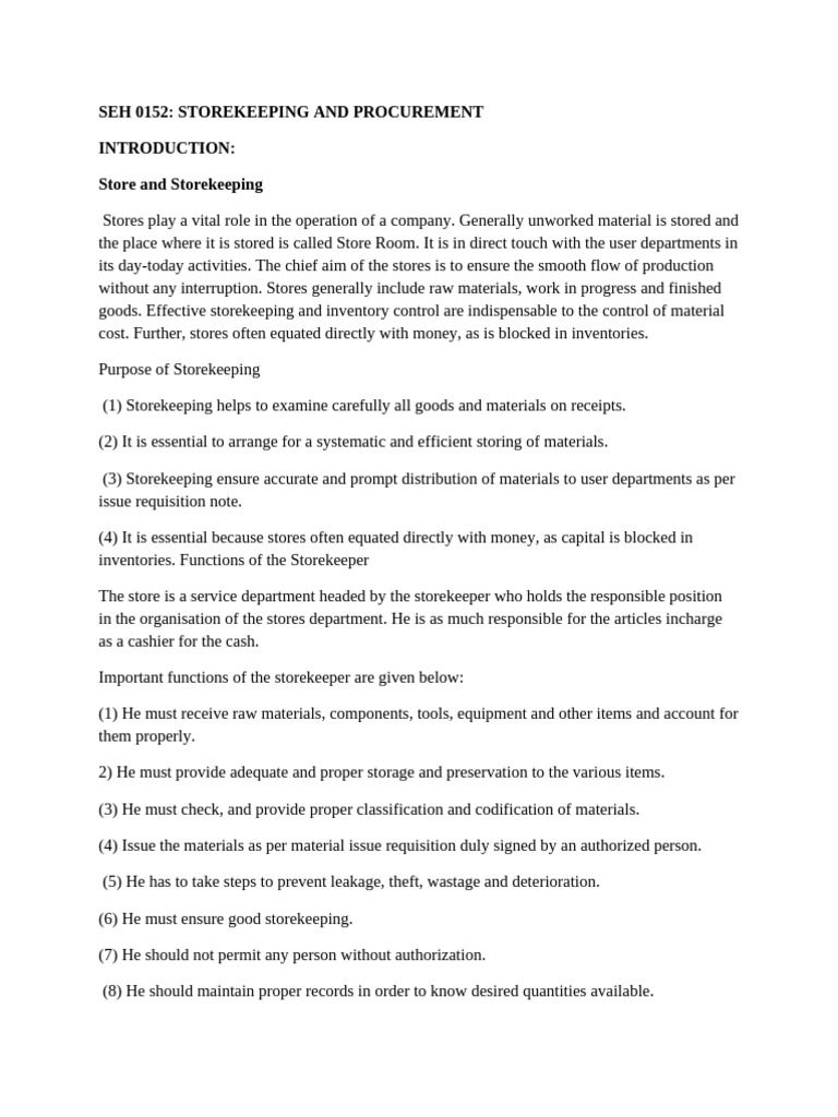 Storekeeping and Procurement Notes | PDF | Procurement | Inventory