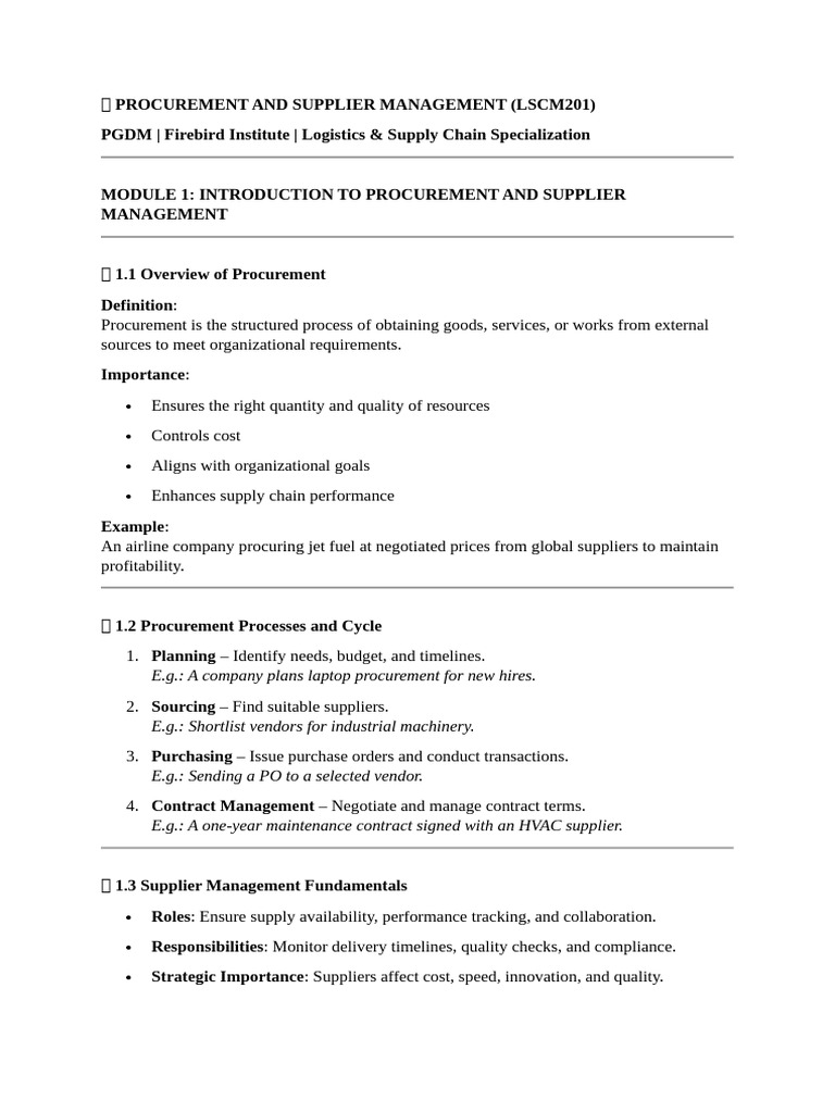 ? PROCUREMENT AND SUPPLIER MANAGEMENT Notes | PDF | Procurement ...