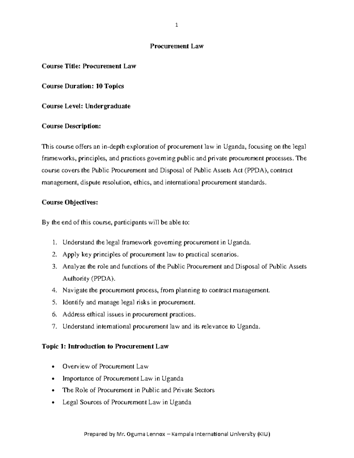Procurement Law Notes (UGA 101): Key Concepts and Frameworks - Studocu