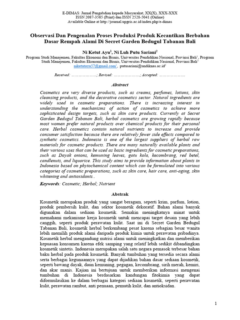 Observasi Dan Pengenalan Proses Produksi Prodak Kecantikan Berbahan ...
