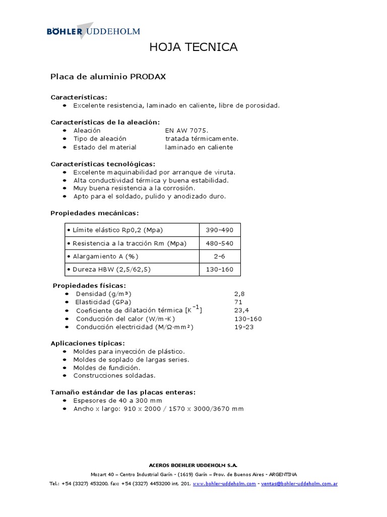 Placa de Aluminio PRODAX: Detalles Técnicos | PDF