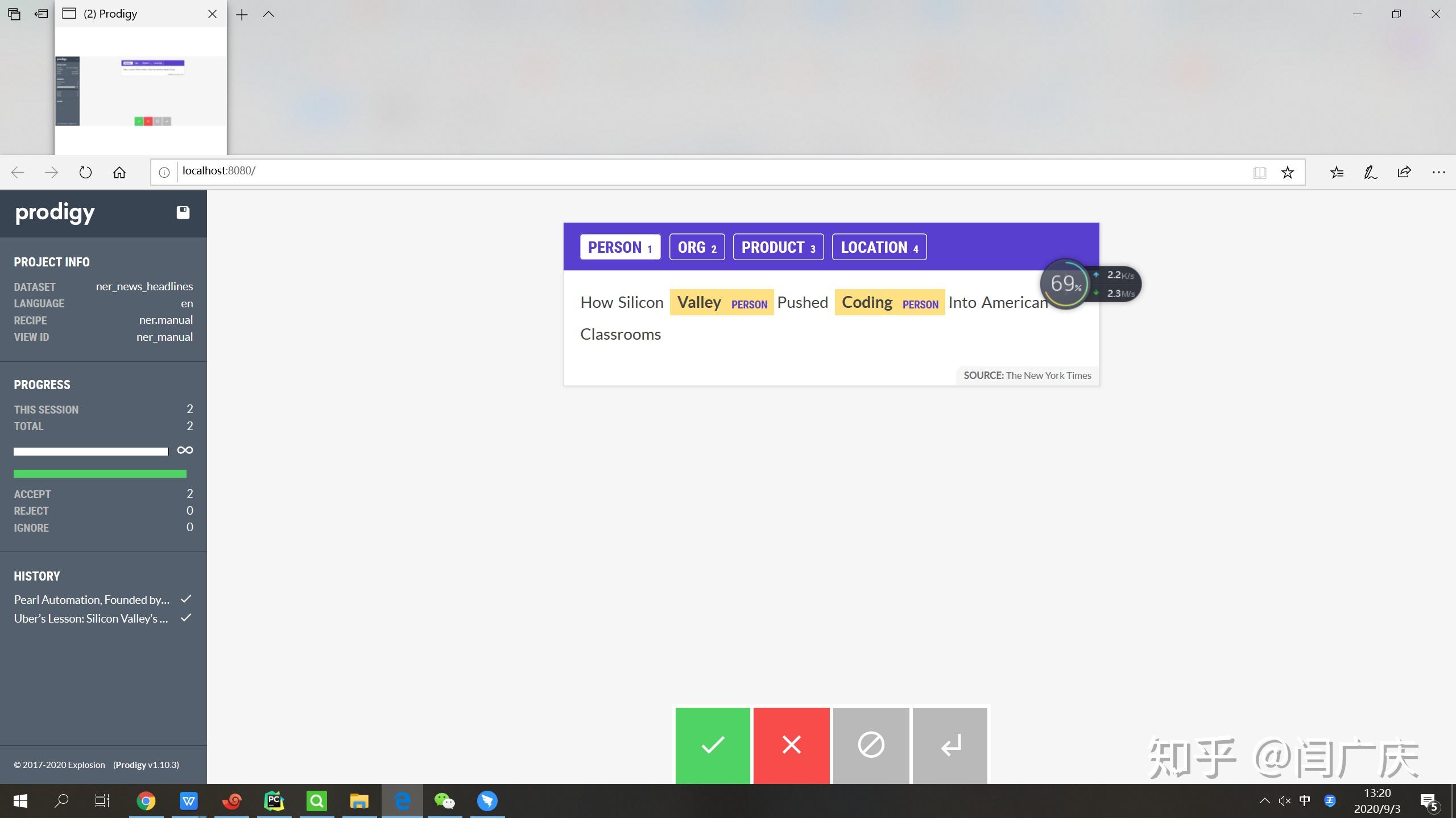 Prodigy annotation - Starting the web server at http://localhost:8080 ...