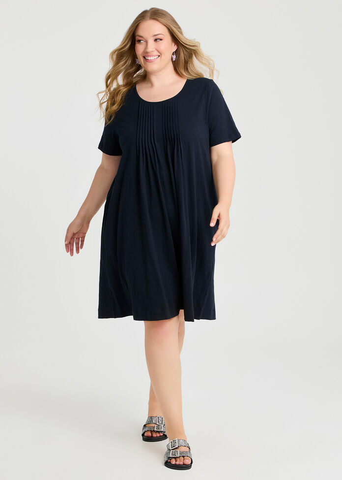 Shop Plus Size Cotton Pintuck Detail Dress, Navy | Taking Shape AU