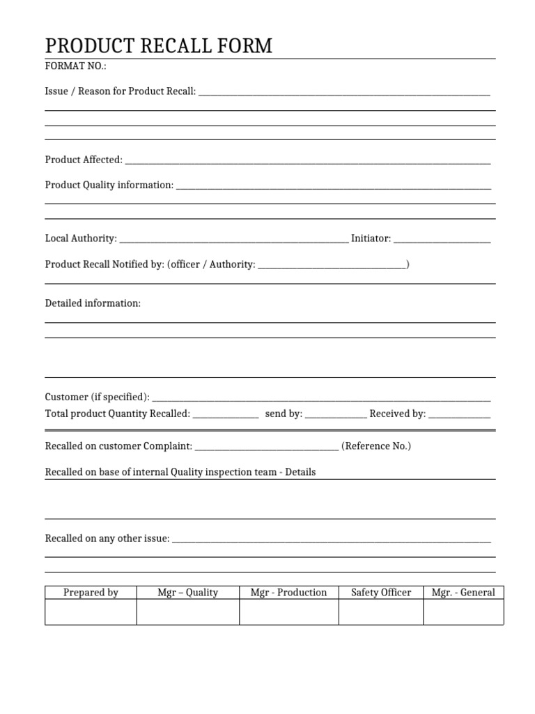 Form Product Recall Form | Business | Free 30-day Trial | Scribd