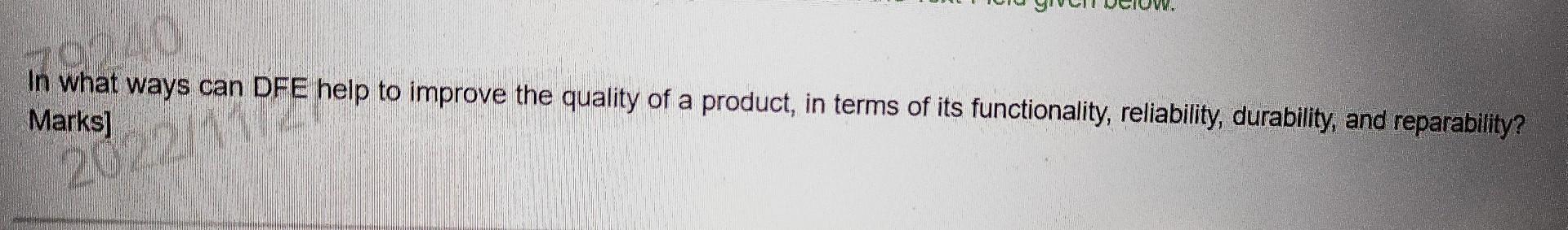 SOLVED:In what ways can DFE help to improve the quality of a product ...