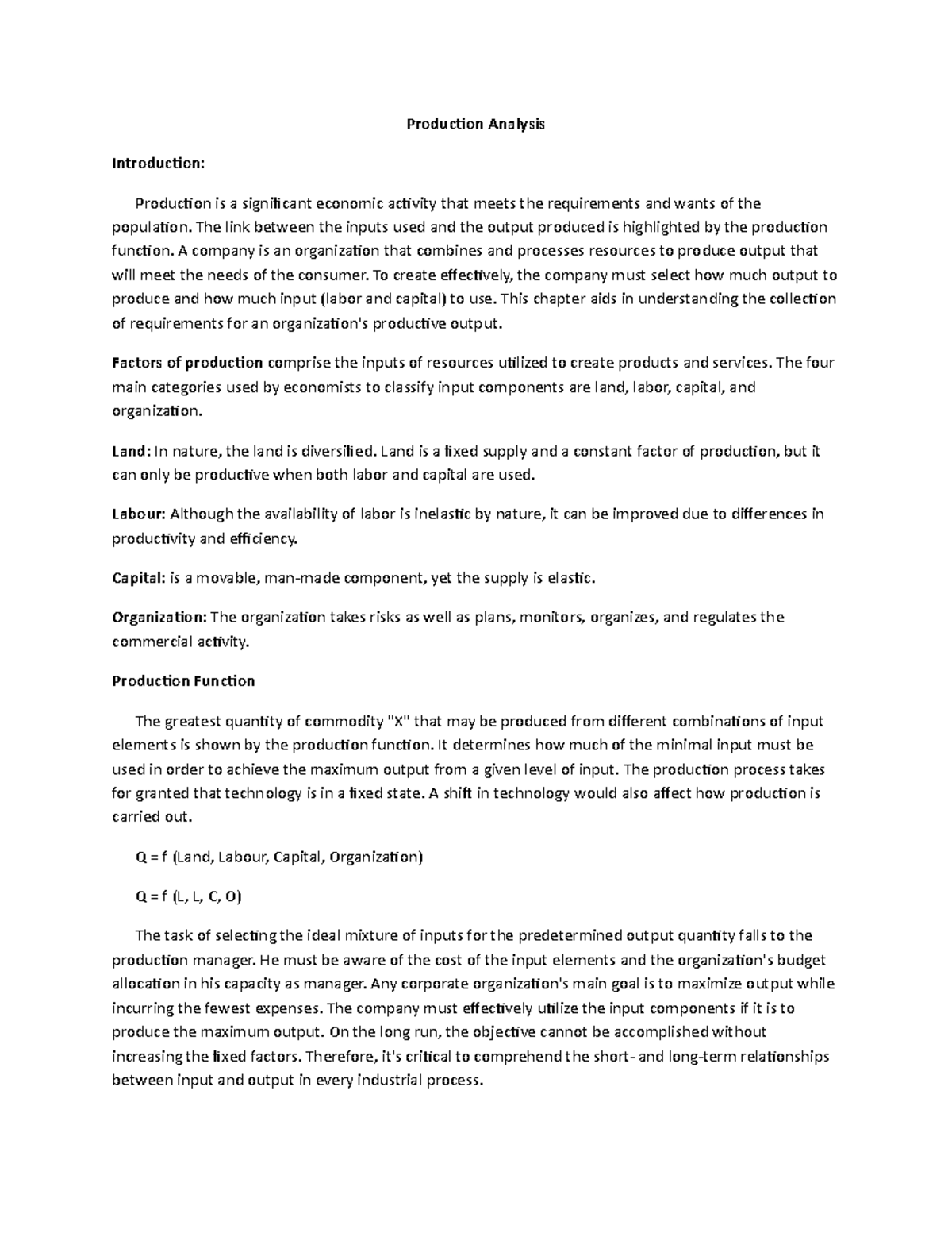 Production Analysis - PRODUCTION ANALYSIS Introduction: The production ...