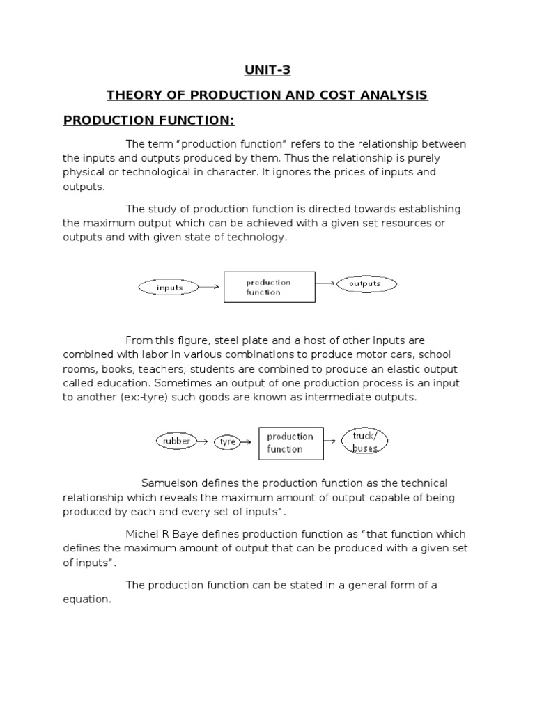 UNIT-3 Theory of Production and Cost Analysis Production Function | PDF ...