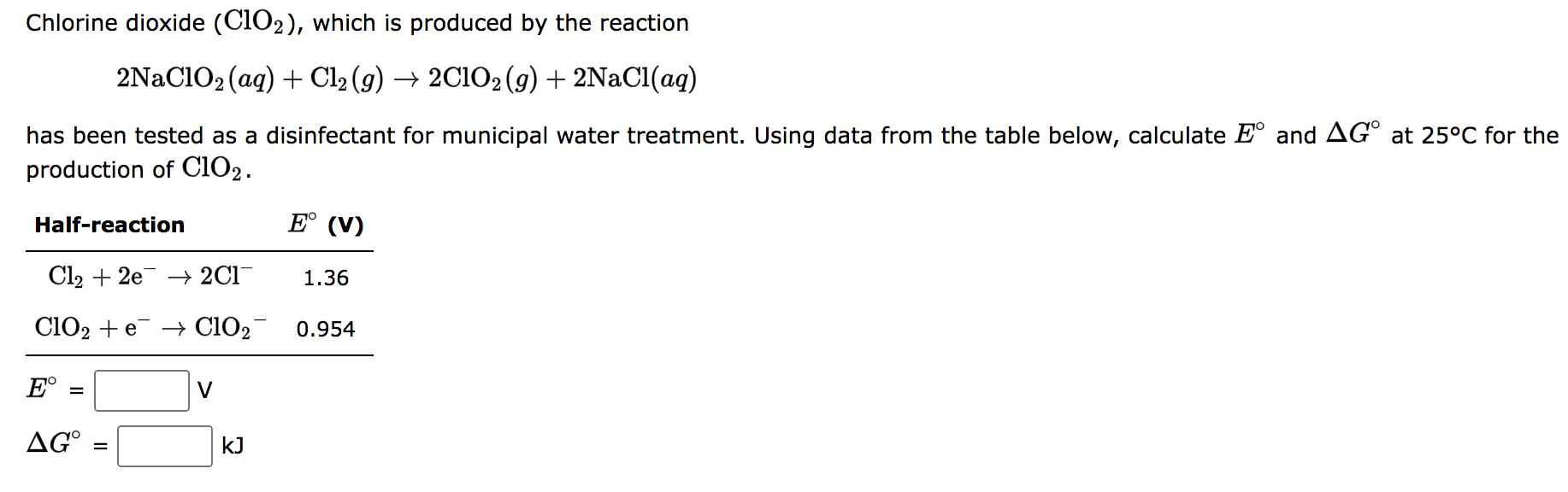 Solved Chlorine dioxide (ClO2), which is produced by the | Chegg.com