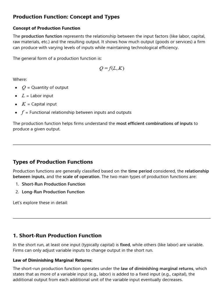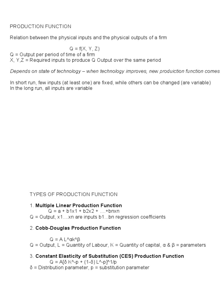 Production Function Types and Characteristics | PDF | Production ...