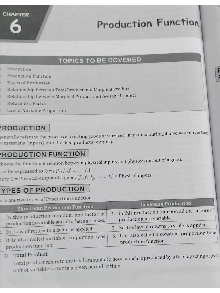 Production Function - Definition Formula Types - BBS Notes
