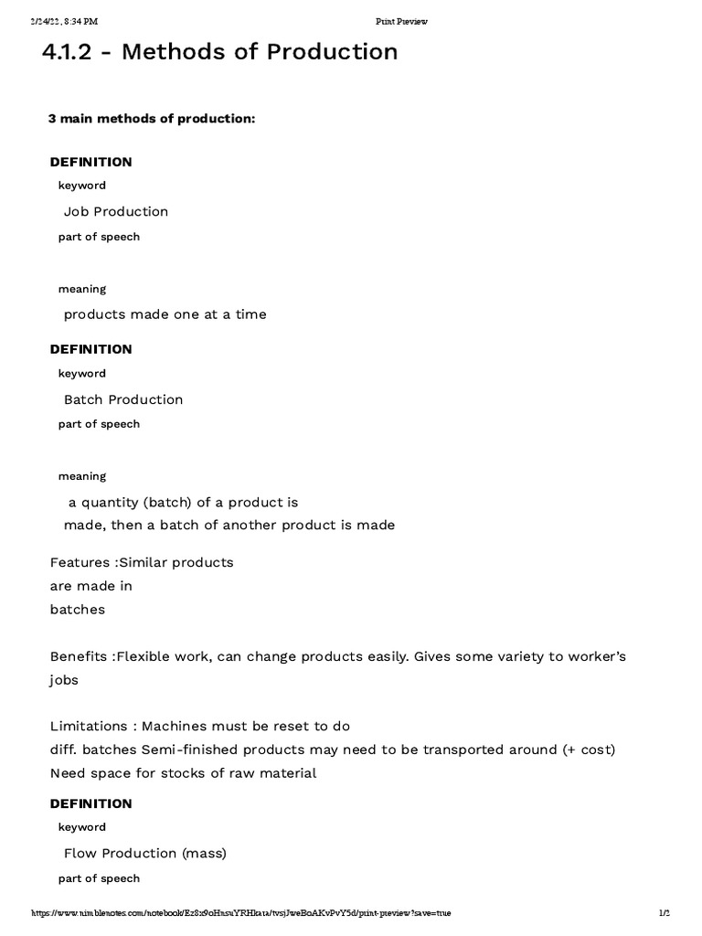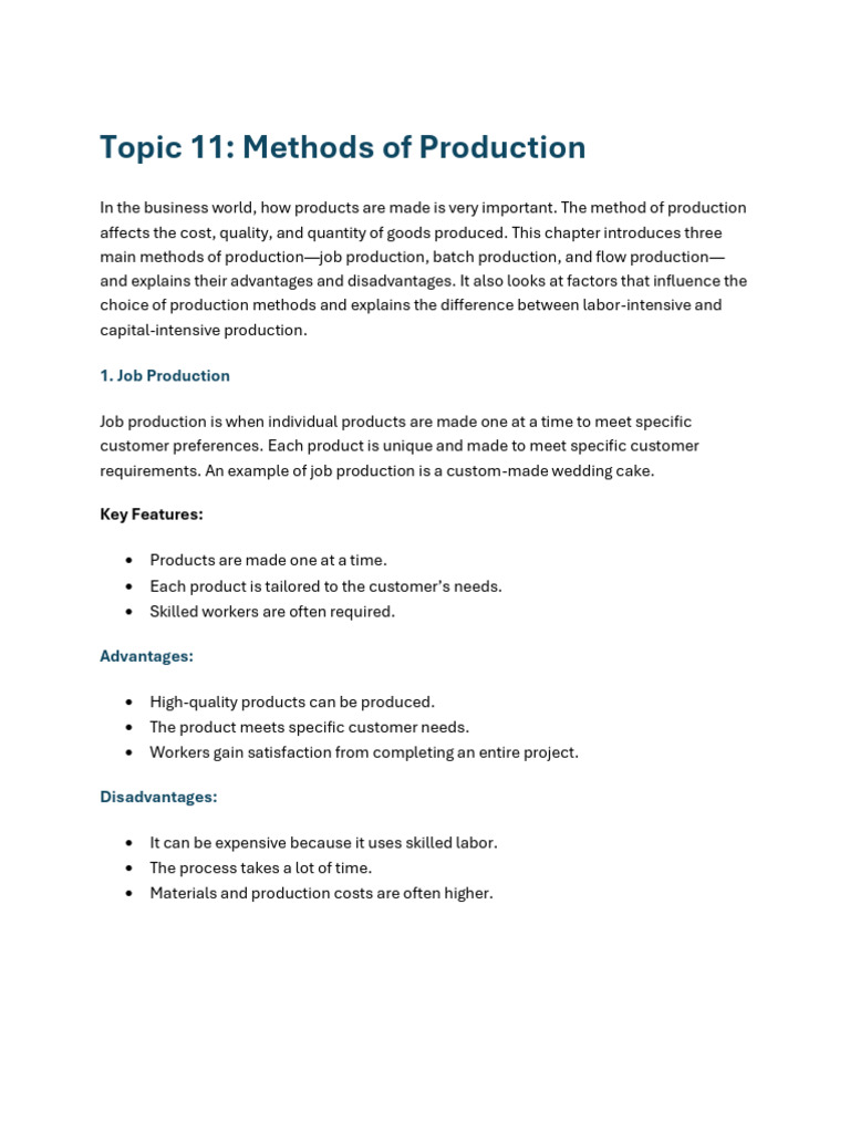 Chapter 2.1 Production Method | PDF | Mass Production | Production And ...