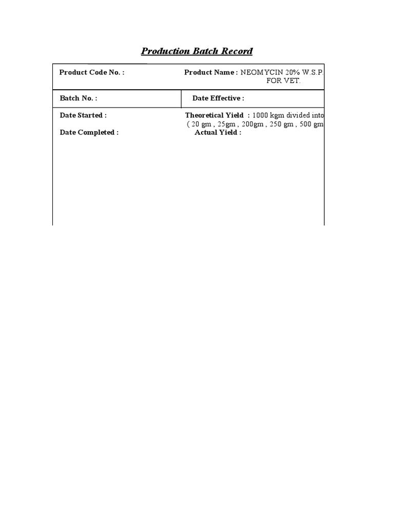 Production Batch Record | PDF