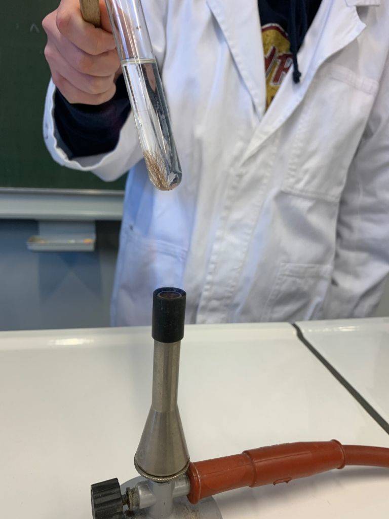 Een oplossing verwarmen met een bunsenbrander — Chemieleerkracht