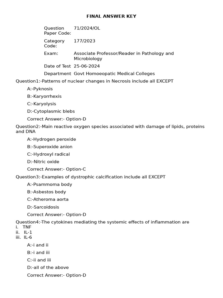 Final Key Asso Prof Reader in Pathology and Microbiology | PDF ...