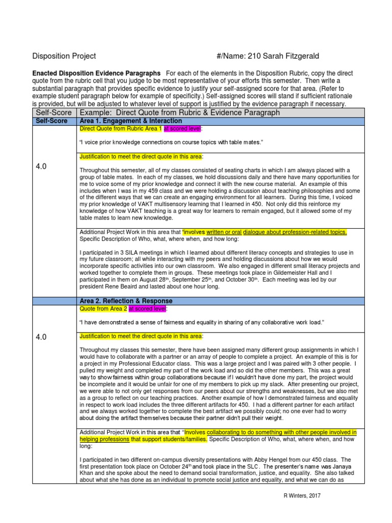 Professional Dispositions Self-Evaluation and Reflection | Course Hero