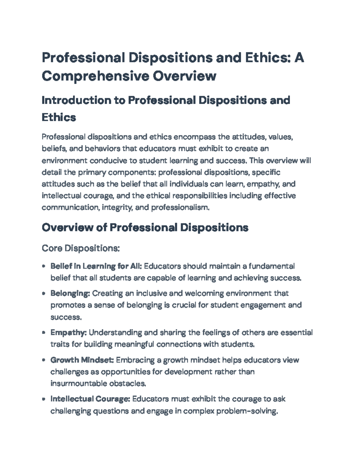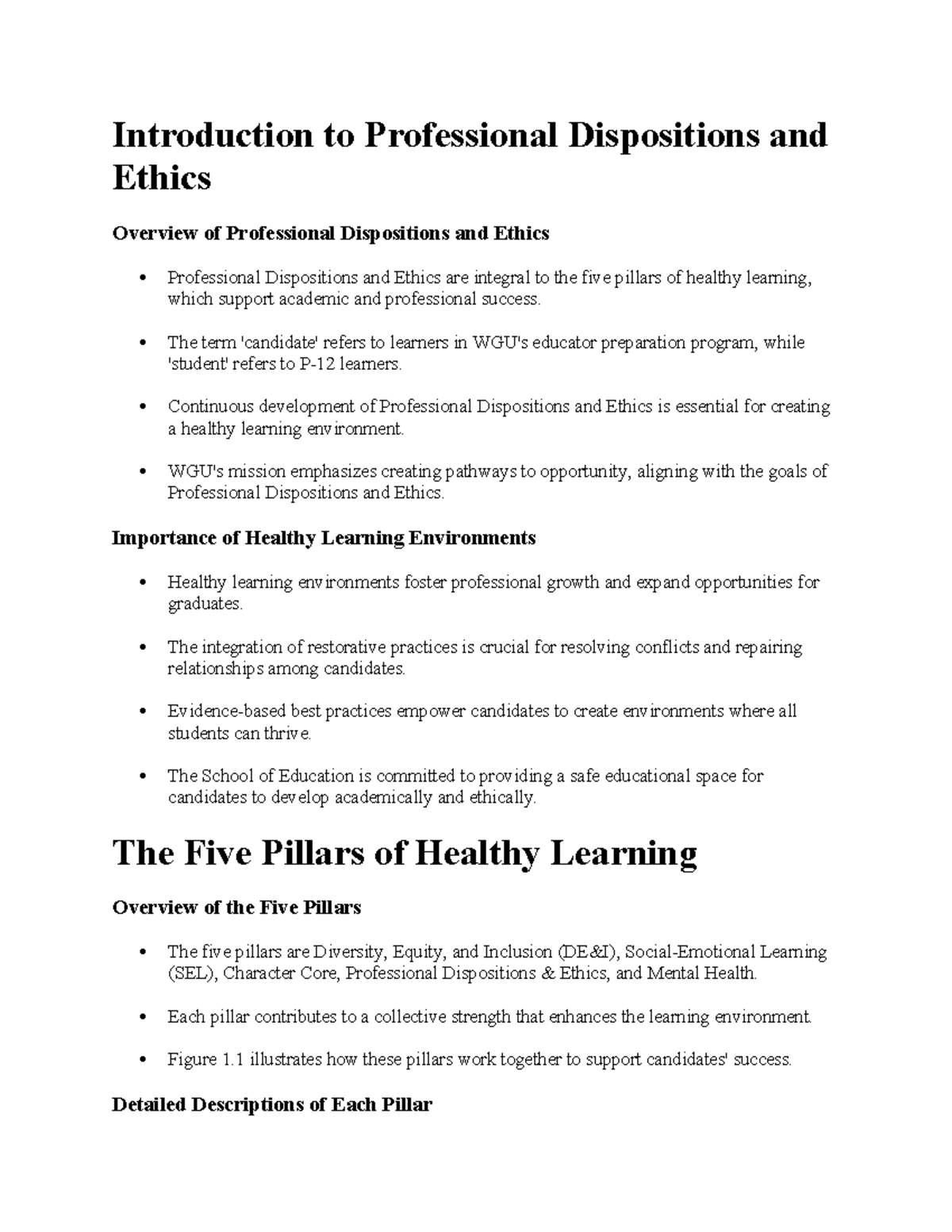 Introduction to Professional Dispositions and Ethics Overview - Studocu