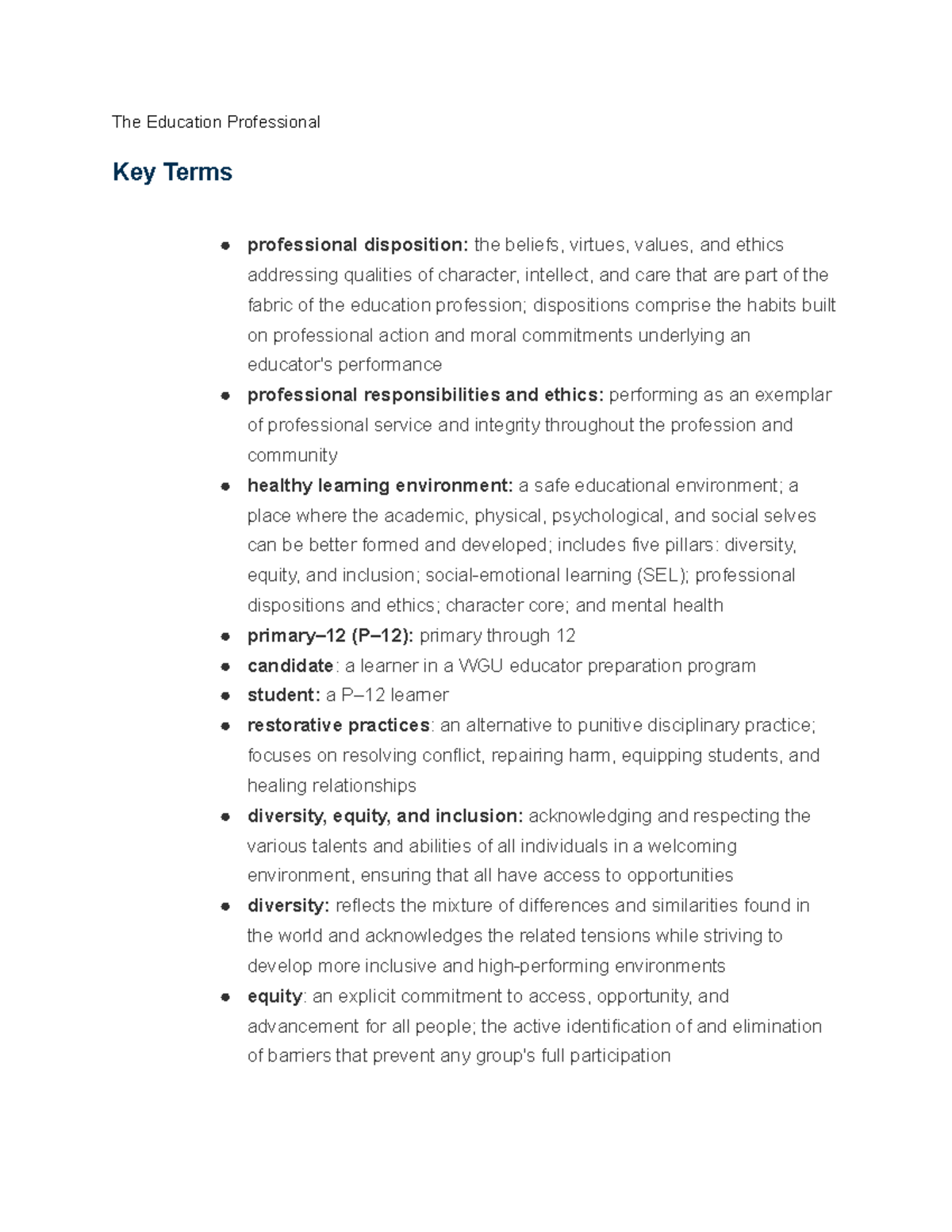 WGU Education Professional Dispositions: Key Terms & Concepts - Studocu