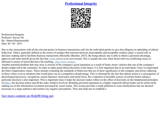 How Integrity is Effective in Our Professional Life: [Essay Example ...