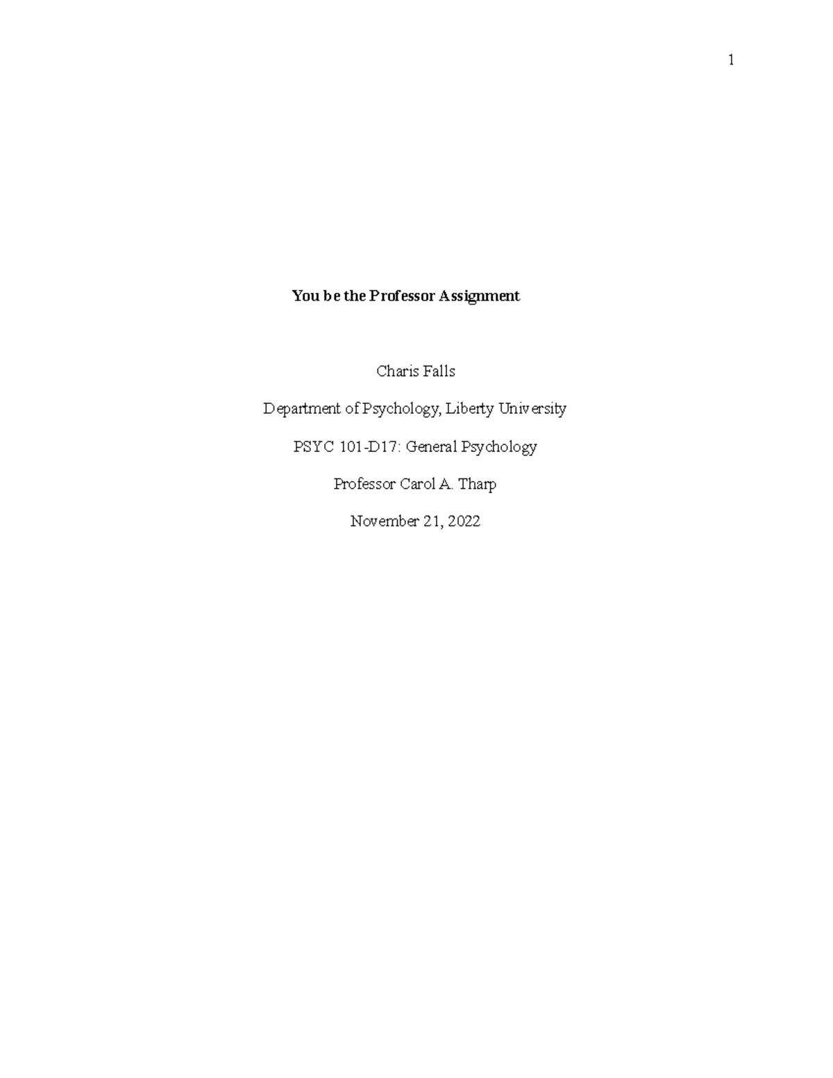 You be the Professor Assignment - PSYC 101 Insights from a Former ...